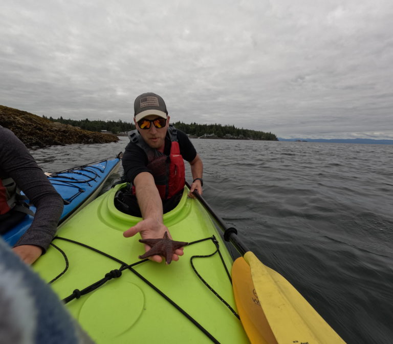 I am so glad that we booked this particular trip. Our tour guide was super knowledgeable and enthusiastic. We paddled lazily around a few islands off the coast for a few hours. We didn’t go very far in terms of distance but that could be relative to how much you go kayaking. We kayak a lot at home, the other couple we were with had never kayaked. We were surrounded by wildlife the entire time. We saw dozens of otters, 15-20 whale spouts, a few sea lions and about a dozen eagles. There were a few porpoises in the distance but they didn’t come very close. A sea lion was following us for a good portion of our paddle, until we lost him. He made a reappearance some time later when an eagle stole a fish he caught. I have never seen anything like that and I am positive no one would believe me if i didn’t get it on video. It was low tide still, so we paused to look at the starfish and sea cucumbers on the backside of one of the islands. When we got back to the resort they had snacks including fresh smoked salmon and crackers. It was an amazing experience and I would highly recommend booking through Alaska Shore Excursions. We had the option to be dropped off back in town or back at Ward Cove to get back on the ship. Originally we were going to go back to town but our energy levels were wavering and we chose to get back on the ship instead.